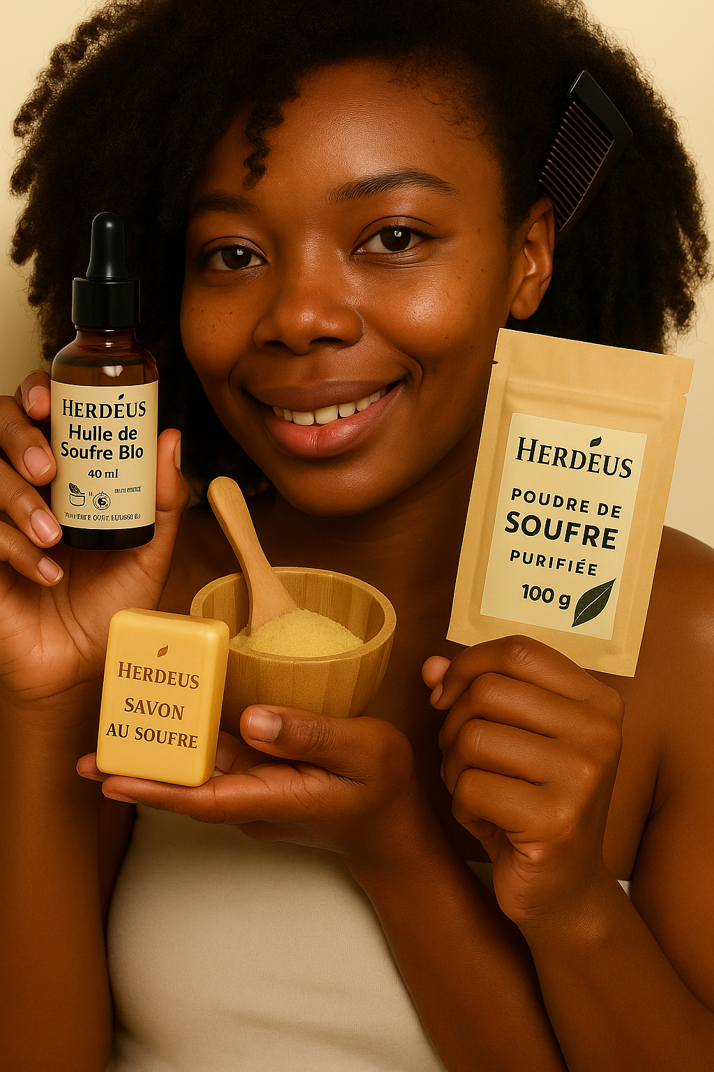 Découvrez l’huile de soufre purifiée Herdeus, un soin naturel d’exception conçu pour rétablir l’équilibre de votre peau et revitaliser vos cheveux.